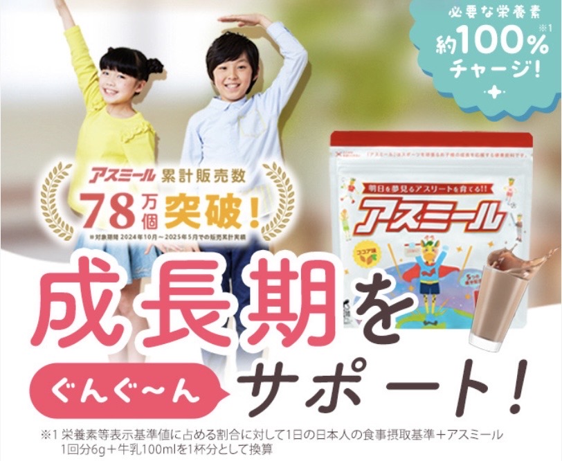 「ちゃんと食べているのに足りているか不安…」そんな悩みをこれ1つで解決 成長期に必要なカルシウム・鉄・ビタミンをしっかり補給 牛乳に混ぜるだけでOKだから忙しくても続く 子どもがゴクゴク飲める美味しさ設計 自宅で簡単に栄養バランスをサポート 毎日の積み重ねが将来の差に。 無理な食事管理をしなくても、自然と栄養習慣が身につき、自信を持てる成長をサポートします。